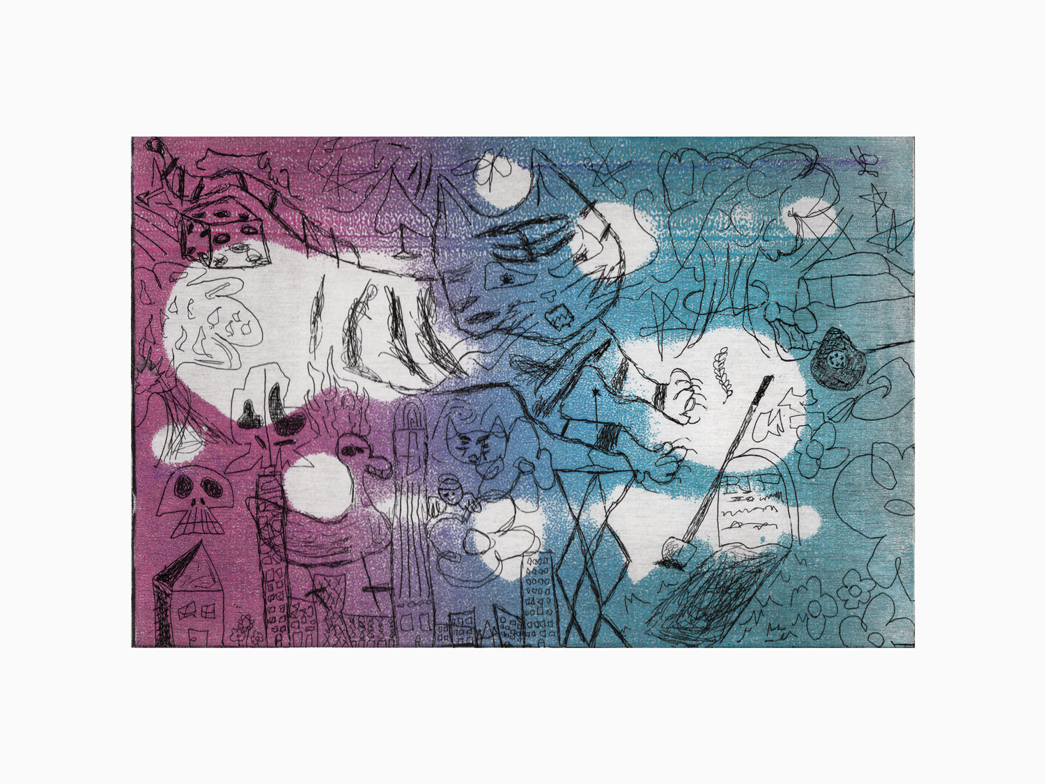 Experiments with direct-to-plate drawing in assorted colorways.